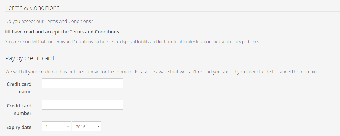 3. Tick the I have read and accept the Terms and Conditions box, then enter your credit card details.