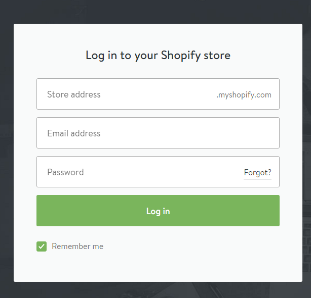 2. You will be required to enter your e-store’s address, your email address, and password.